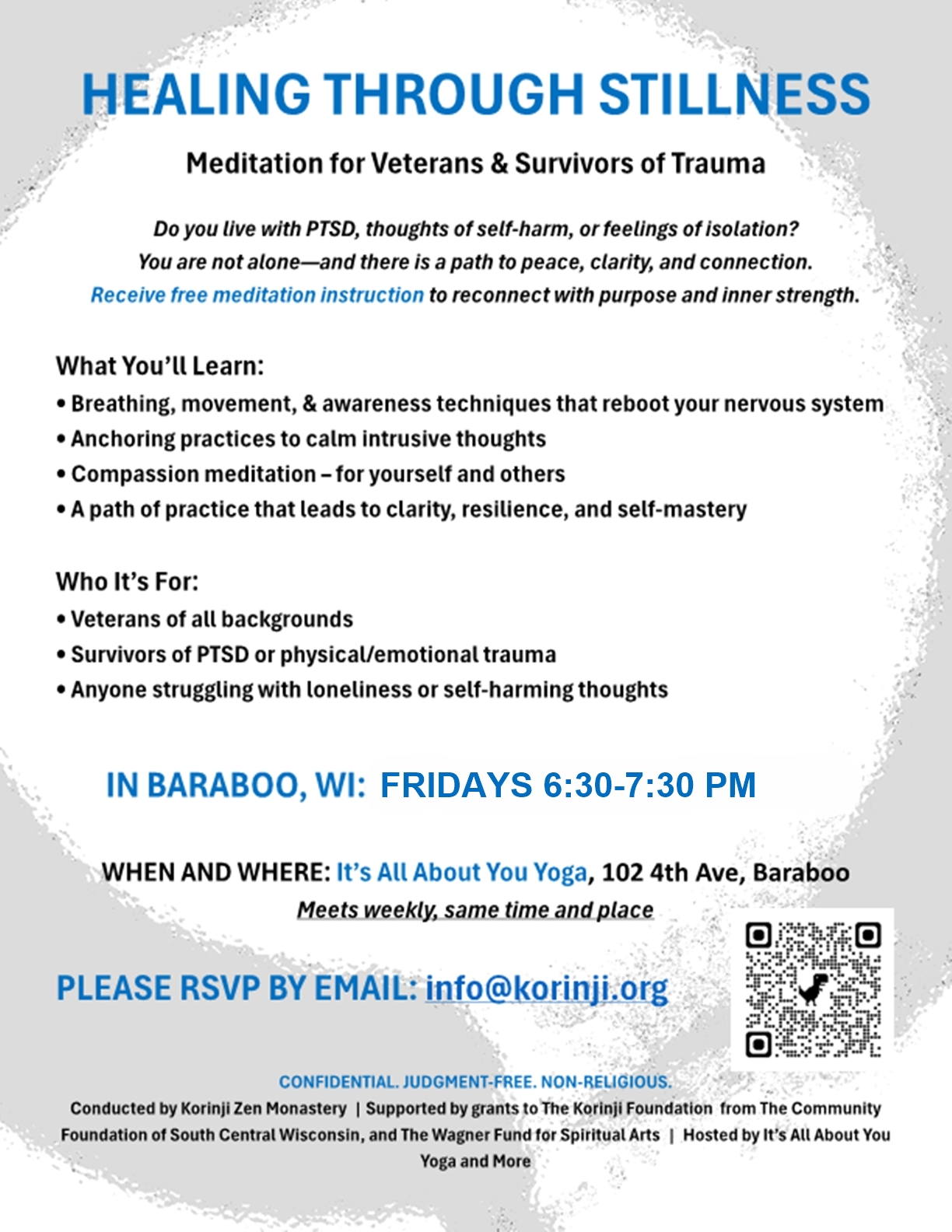 Healing Through Stillness is made possible by grants to The Korinji Foundation from The Community Foundation of South Central Wisconsin and The Wagner Fund for Spiritual Arts.